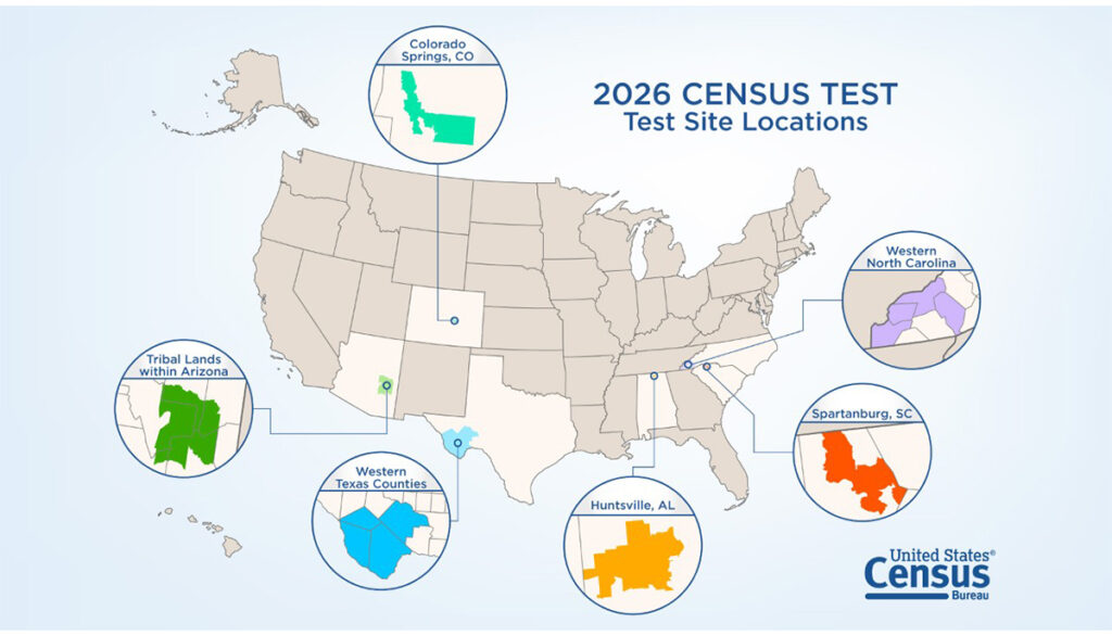 On Feb. 3, 2026, the U.S. Census Bureau published a notice in the Federal Register soliciting comments on the 2026 Census Test, a crucial test in the decennial census cycle that is meant to gauge the ability to reach residents who have typically been the hardest to count. Originally, the Census Bureau proposed six sites for this test: Colorado Springs, CO; Huntsville, AL; Tribal Lands within Arizona; Spartanburg, SC; Western North Carolina; and Western Texas. However, the Census Bureau has since updated the test sites to only include the South Carolina and Alabama sites.